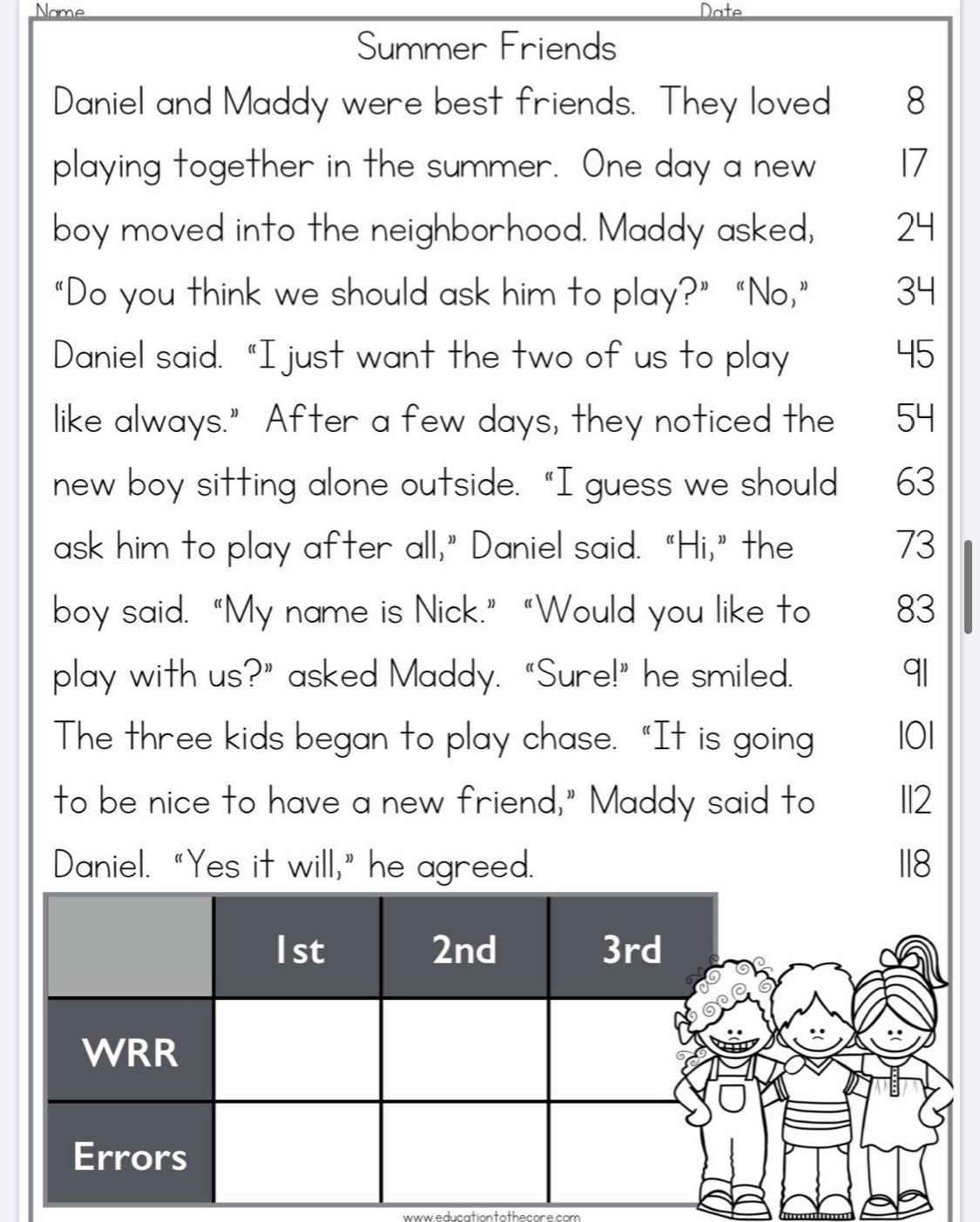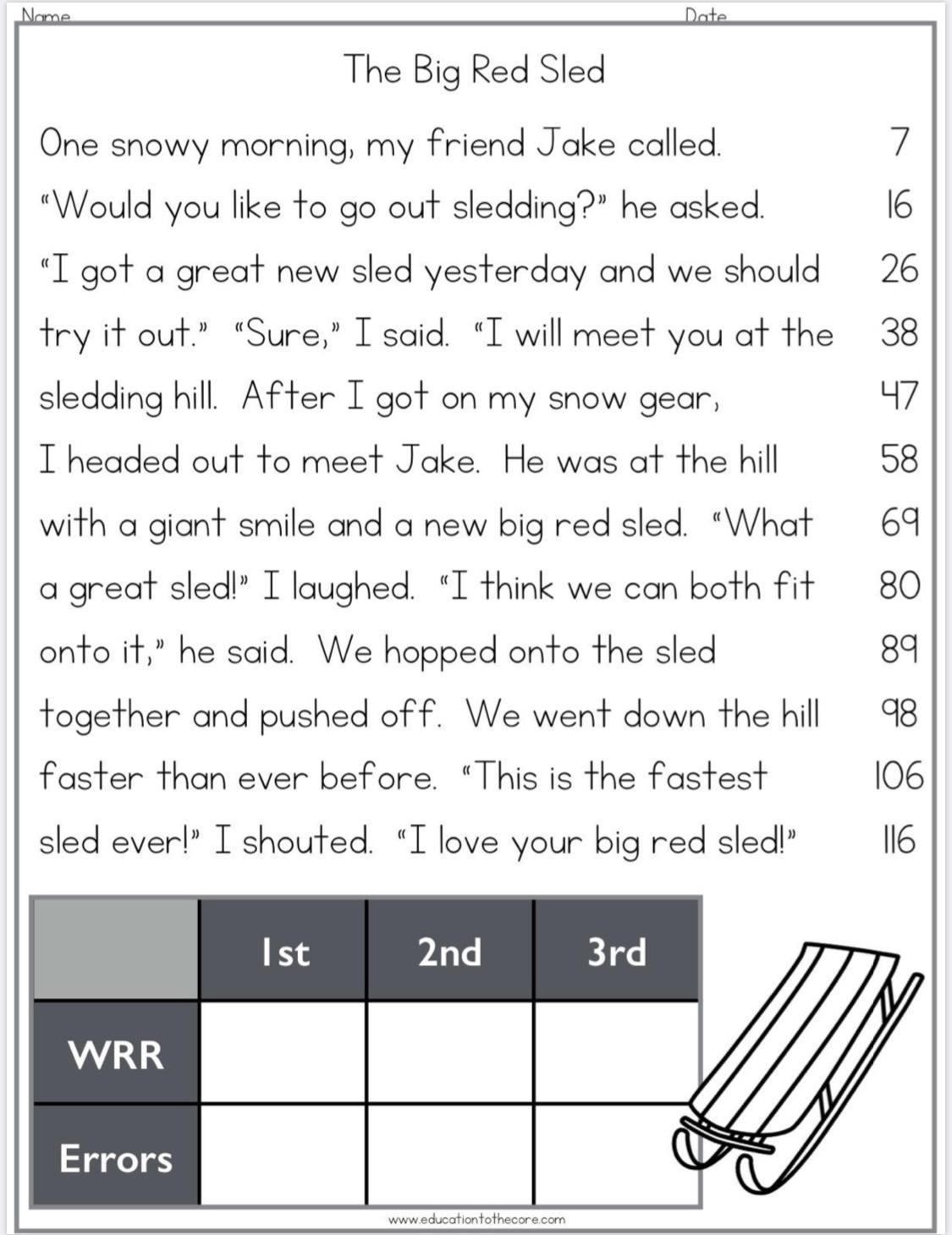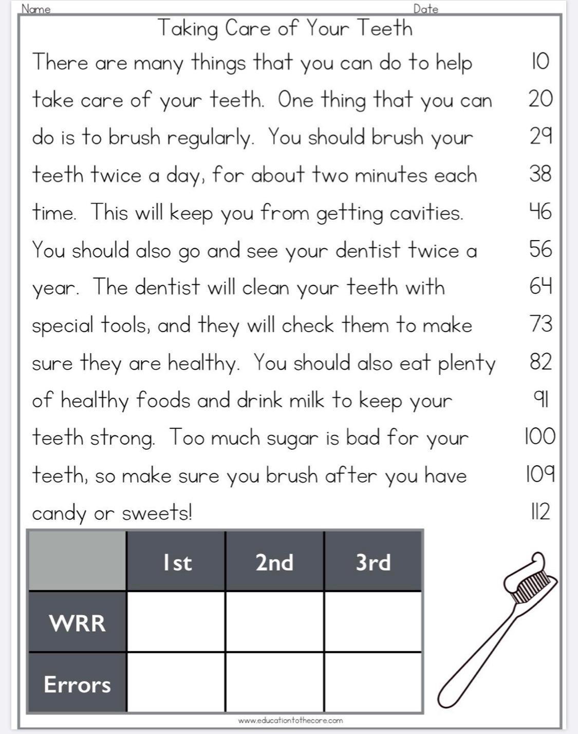 Just like students used to do it for homework; students read it all first read, second read- you set the timer for 1 minute and record their words read correctly, third read is for them to understand the text better to answer the comprehension questions.