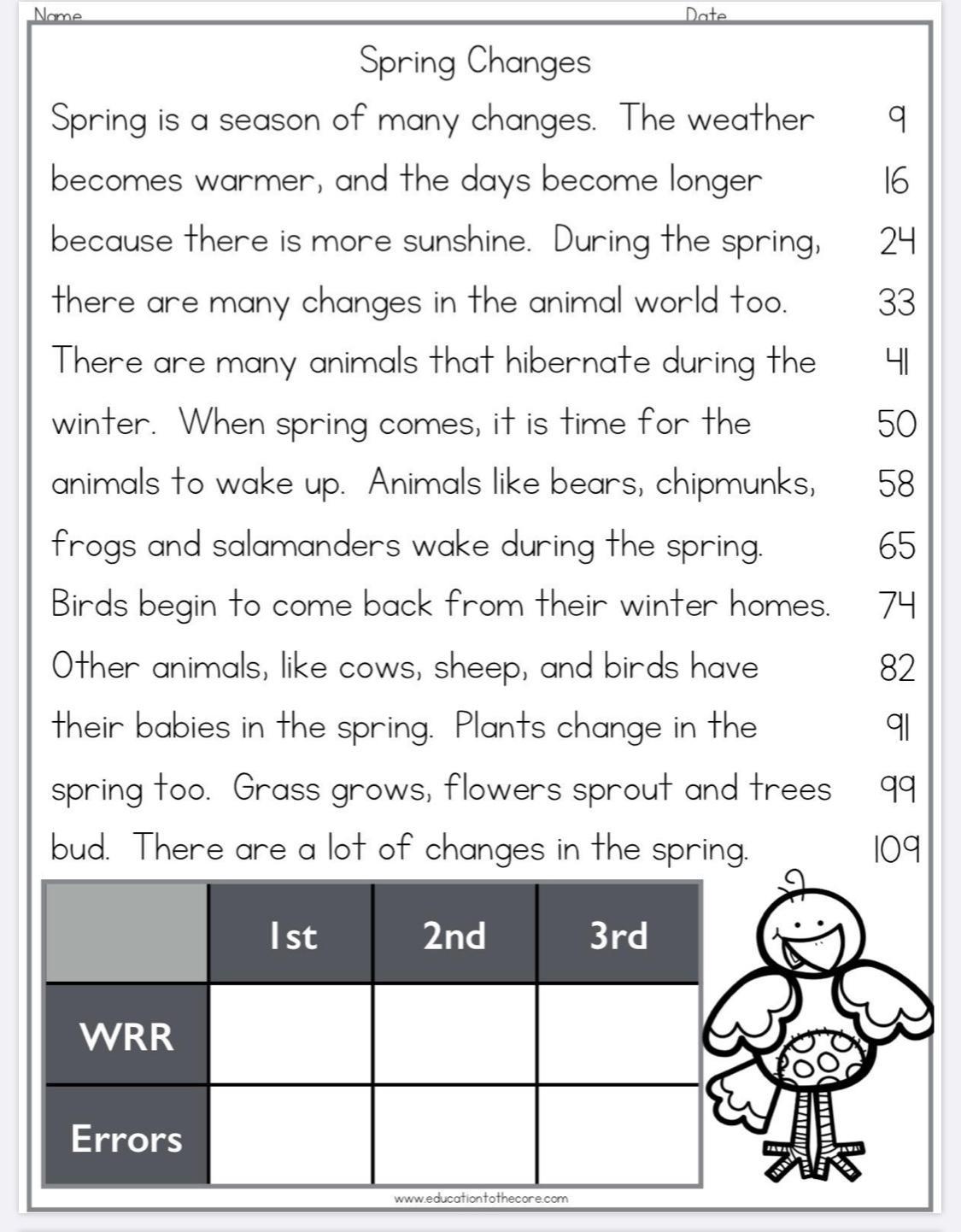 This passage is for the week of Monday, April 6 to Thursday, April 9. Below you will find the Reading Fluency Passage along with the comprehension questions to go with it.