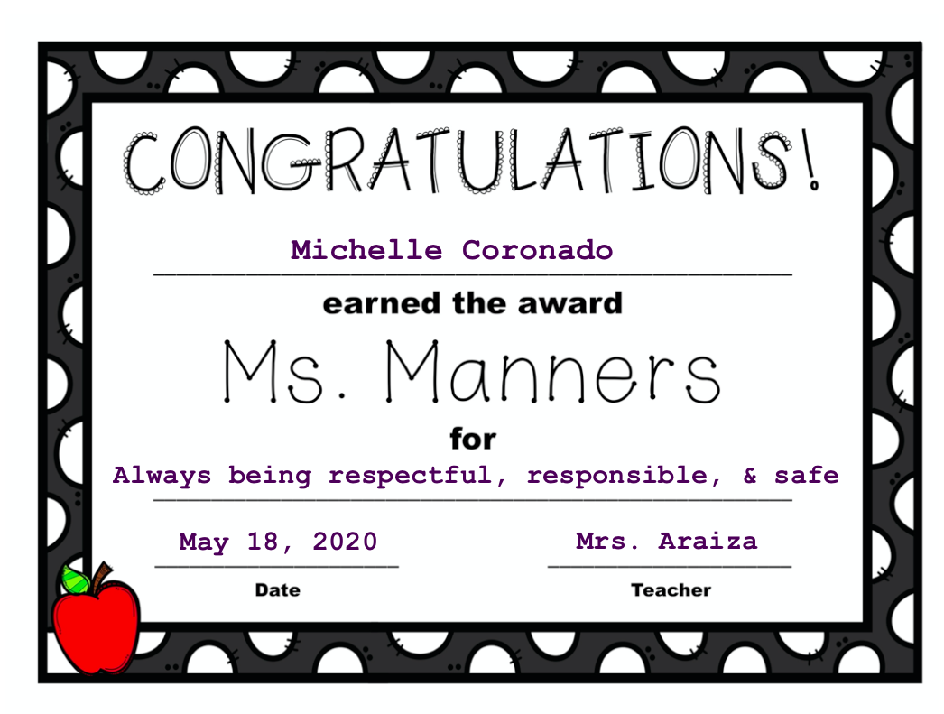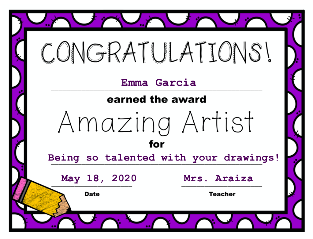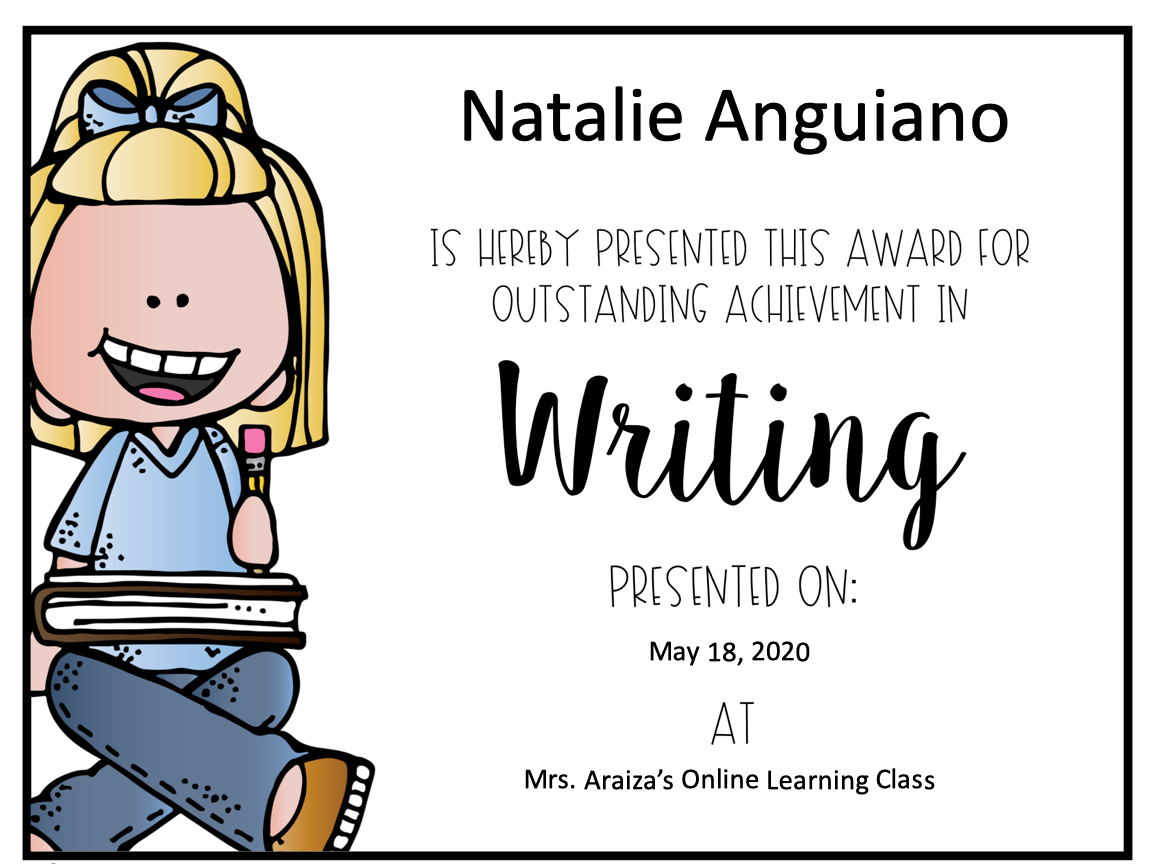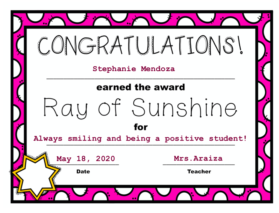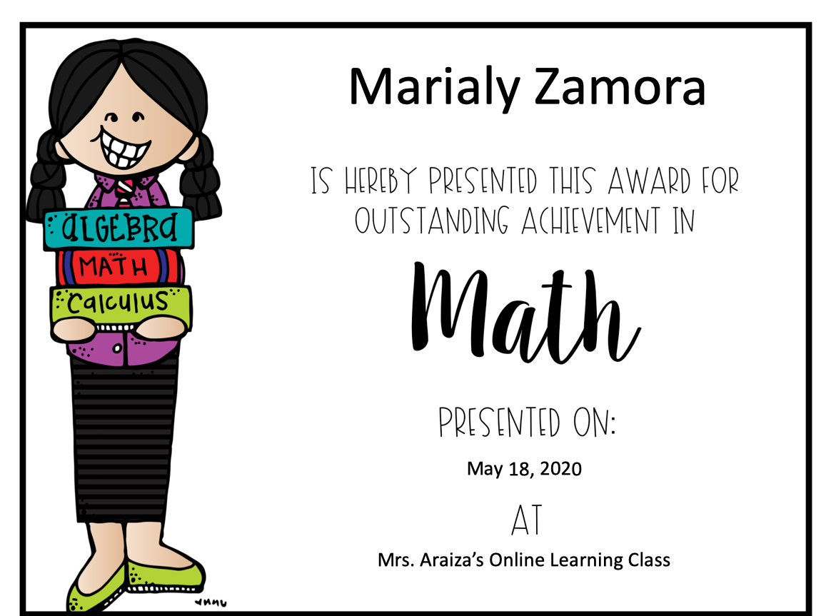 Congrats to all of my amazing students for always working so hard on your assignments! A huge shout-out to all of you for adapting so well on our new way of learning from home. You can accomplish great things in 4th grade!