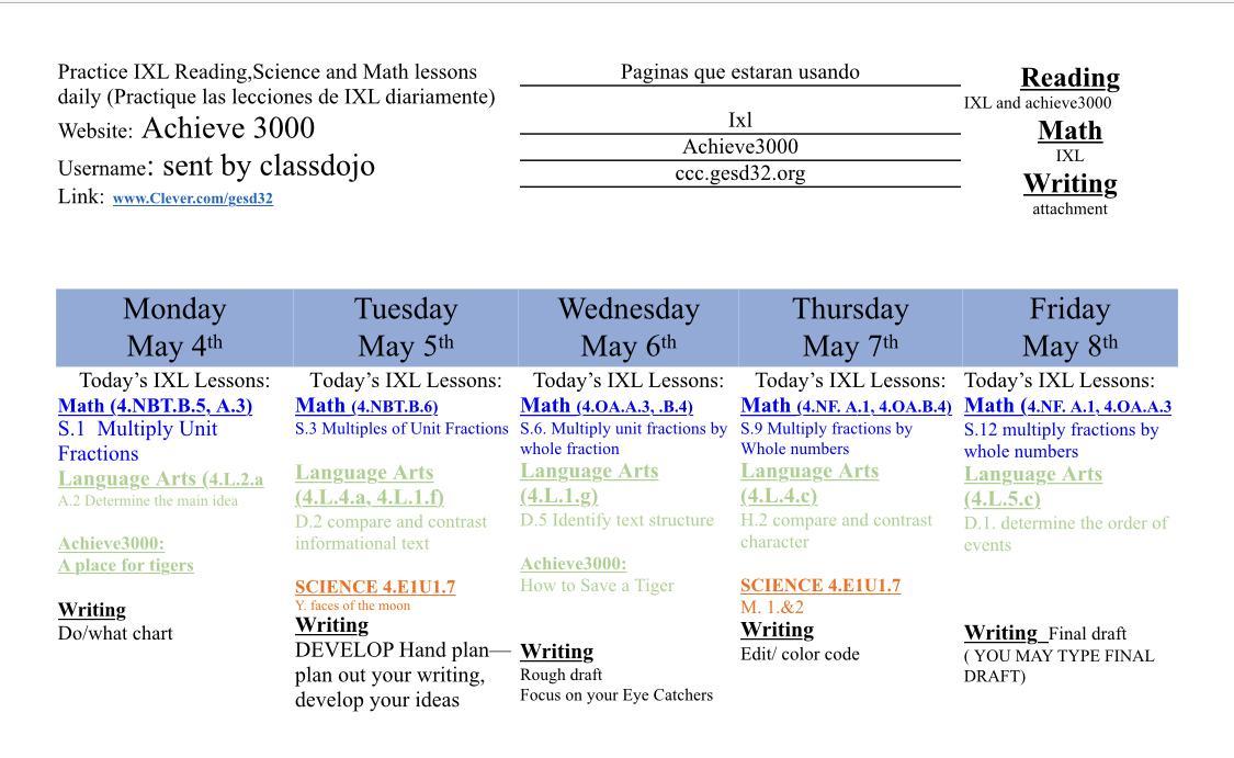 Por favor de completar las siguientes tareas antes del dia indicado. Por favor contacteme (928) 261-0573, para la tarjeta de accesso de Clever, o agrégueme en ClassDojo.