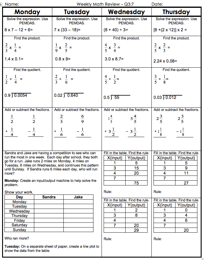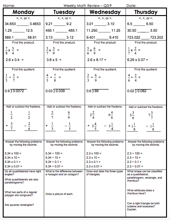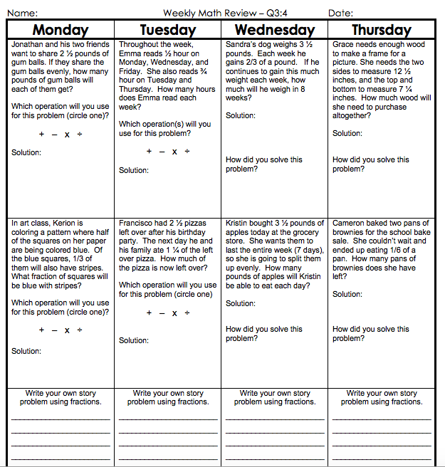 **Bell work and Achieve Response Sheets can be found below as PDF files if you wish to print them.**