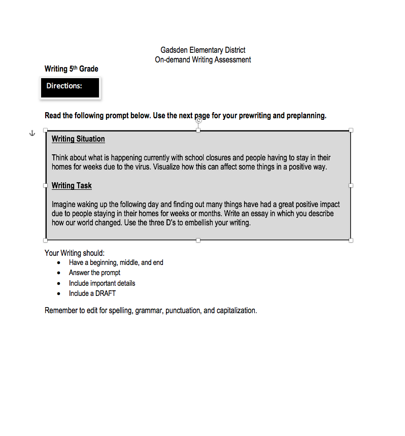 *Final copy is due FRIDAY MARCH 27, 2020 and will be submitted through class dojo in the student portfolio.*