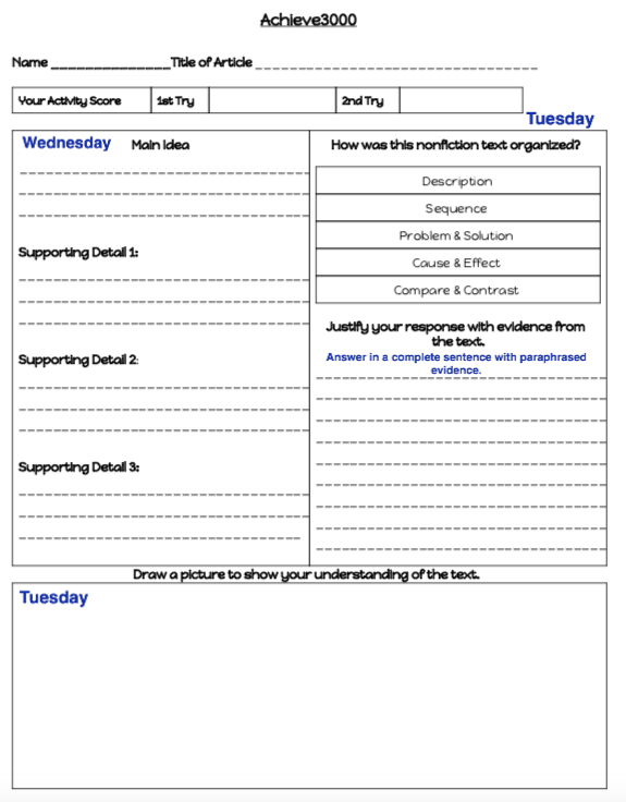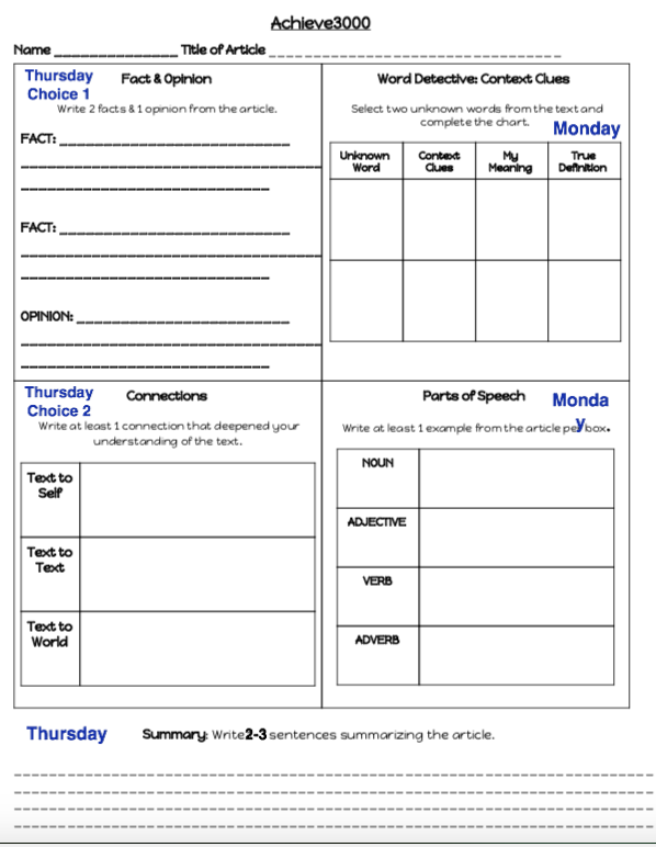**The articles that will be use for reading and writing can be find by clicking the links below or in Achieve3000. Achieve3000 testing will only be on Fridays. We will read and work on the same article all week long instead of testing one article a day.**