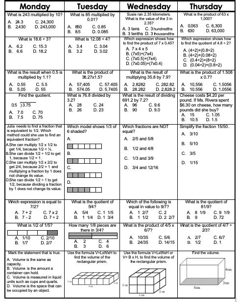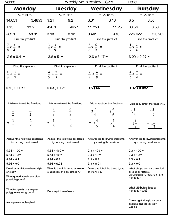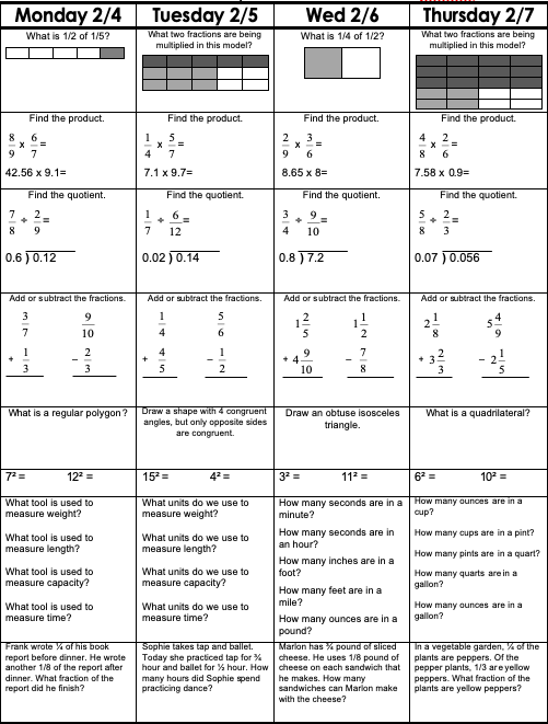 Please follow this weekly guide to complete daily assignments for math, reading, writing and grammar.