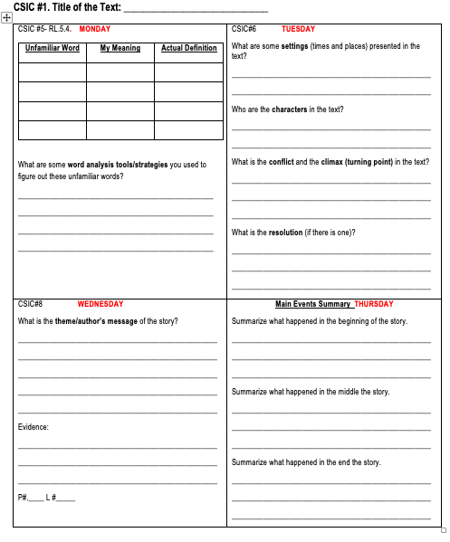 Please follow this weekly guide to complete daily assignments and activities.