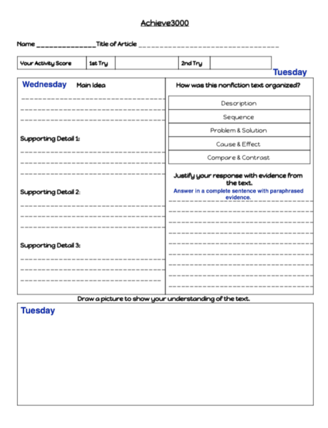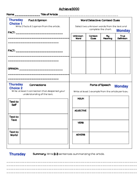 **The articles that will be use for reading and writing can be find below or in Achieve3000. Achieve3000 testing will only be on Fridays. We will read and work on the same article all week long instead of testing one article a day.**