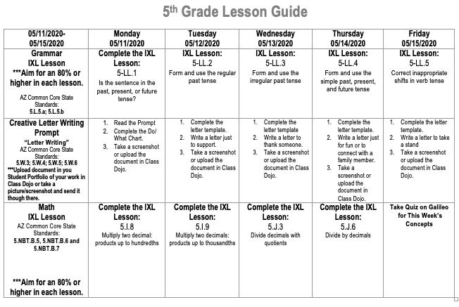 Weekly Lesson Guide- May 11th-15th, 2020