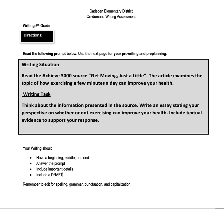 This is the AZMERIT2 Practice Writing Prompt. Follow the writing steps at the bottom :)